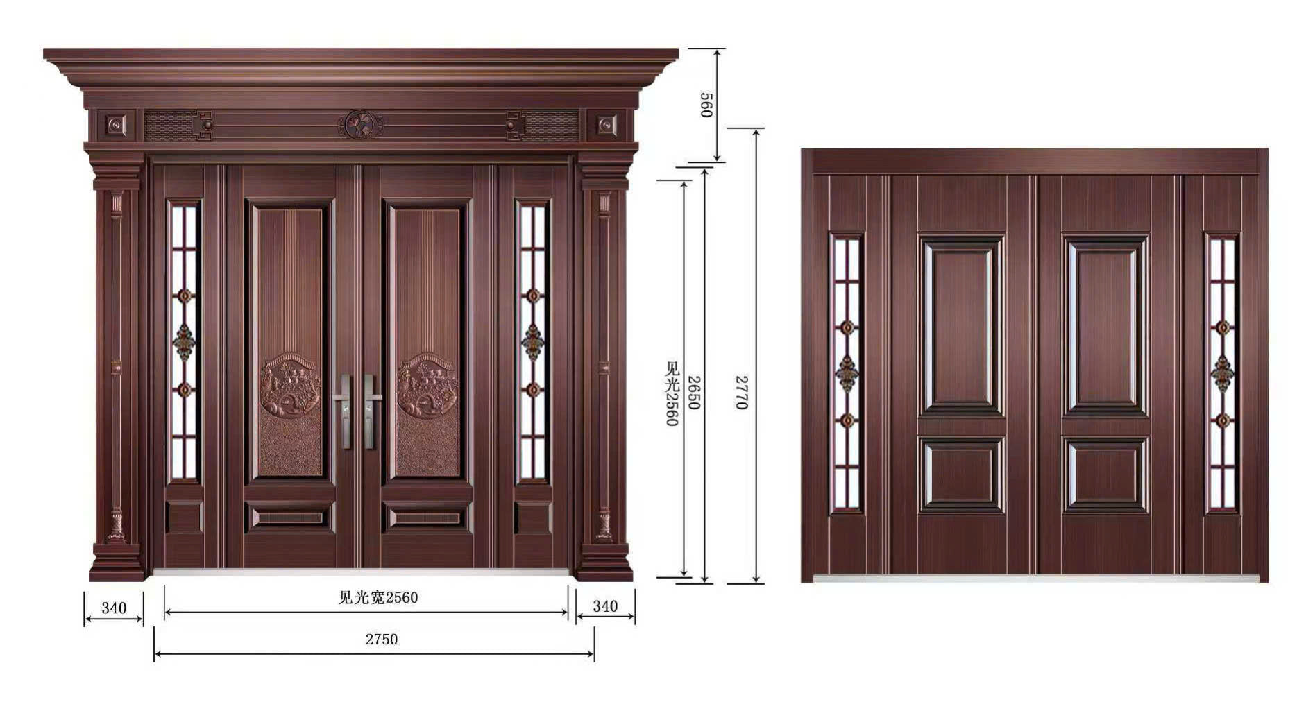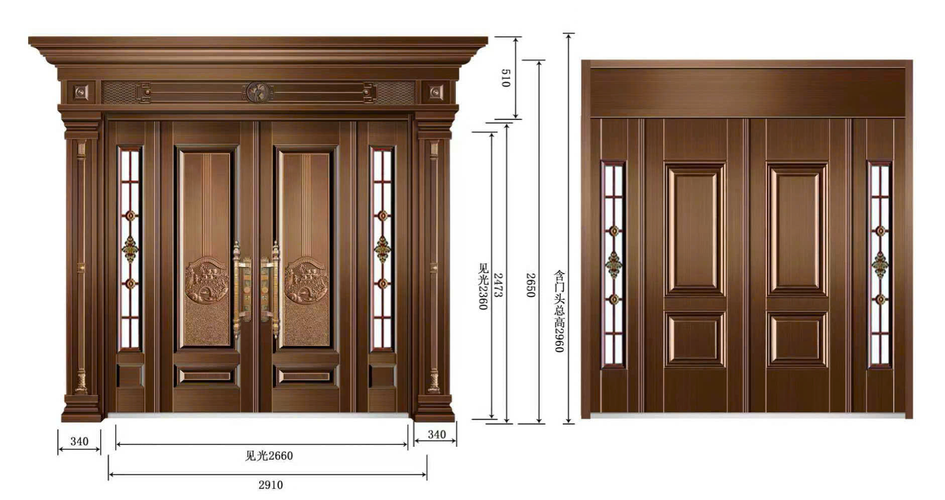 Mẫu Cửa Chính 4 Cánh Lệch Đẹp Có 2 Kính 2 Bên Cửa Nhỏ Cao Cấp Dragon